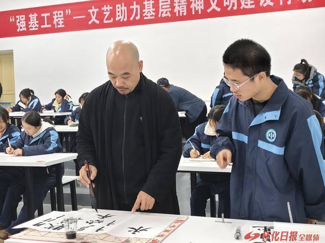怀化日报全媒体讯12月29日,洪江市黔阳一中校园内暖意融融、艺韵飘香。湖南省文联“笑满三湘”文艺志愿服务团携优质文艺资源走进校园,以培训辅导与专场演出相结合的形式,为师生们送上了一场浸润心灵的美育盛宴,这也是“强基工程”文艺助力基层精神文明建设的生动实践。